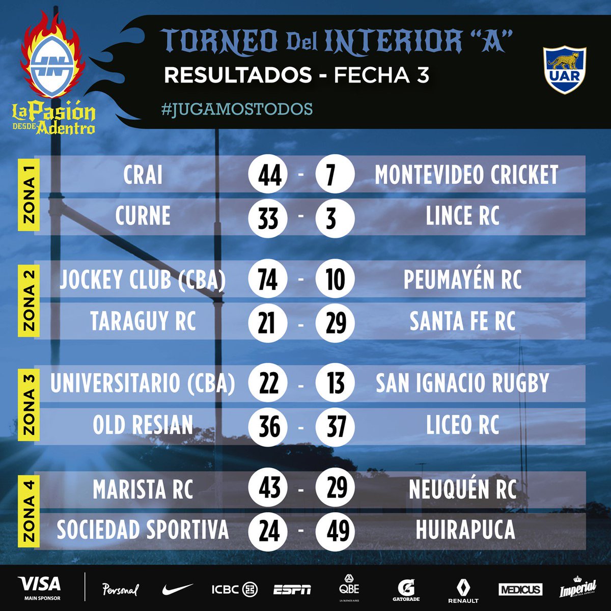 La fecha contó con varios encuentros en distintos días y horarios. Ninguno se jugó en el tradicional horario de las 15:30 del sábado, debido a la actuación de Jaguares ante Lions. Tucumán Lawn Tennis dio una de las sorpresas al derrotar al campeón Hindú por 15-13. Dos tries del hombre de Jaguares, Nicolás Leiva, no le alcanzaron a los de Don Torcuato, ante la efectividad con el pie del equipo del norte. Por su parte, CUBA venció a Duendes por 26-16 y emparejó el grupo más peleado de todos. Un penal en la última jugada de Juan Cruz González le quitó el punto bonus a los rosarinos, que venían de ganar en sus dos primeras presentaciones.