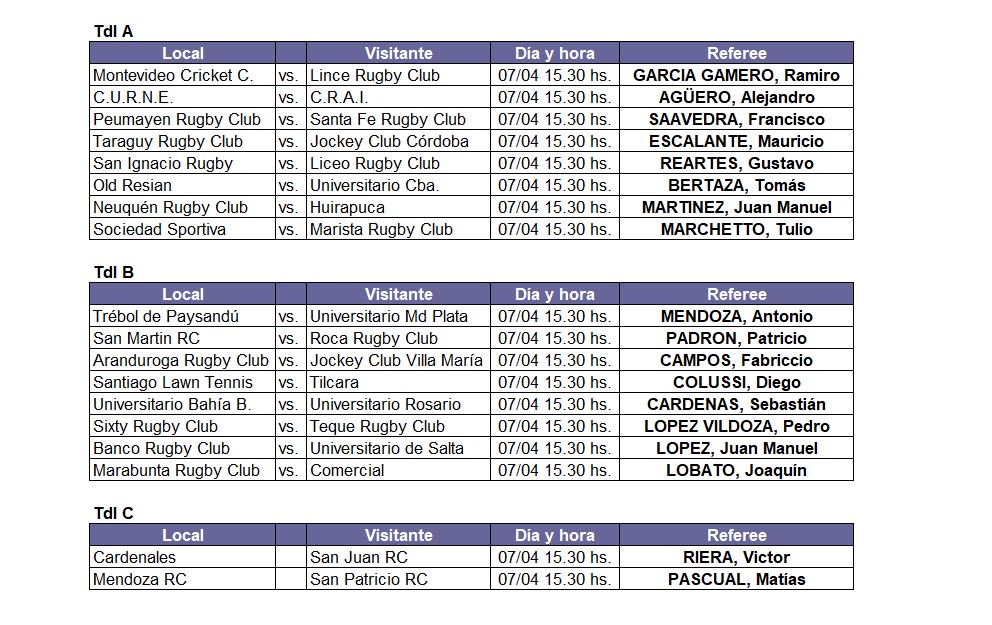 Partidos y árbitros de los Torneos del Interior. En el “A” Huirapuca y Jockey de Córdoba esperan en los cuartos de final. En el “B” Jockey de Villa María y Teque RC también sacaron su boleto para los play-off. En el “C” San Juan RC, Mendoza RC, San Patricio RC y Cardenales buscarán su lugar en la final del campeonato.