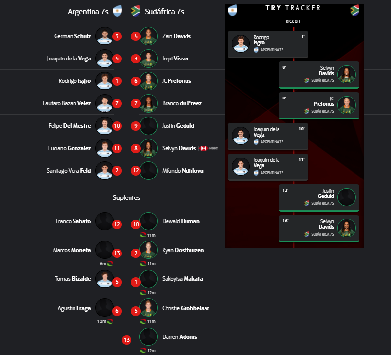 Fue una final disputada en cada minuto, en cada ruck y cada metro. Una final jugada al límite y que se definió en la última pelota, con Selvyn Davids como verdugo. Una de las figuras del circuito que abrió y cerro el marcador para que Sudáfrica logre su 5° título al hilo en el World Rugby Seven Series. 29 triunfos al hilo del seleccionado que, sin la participación de Nueva Zelanda y Fiji y con un Estados Unidos que bajó el nivel, más Inglaterra en una etapa de recambio, domina con claridad el seven.