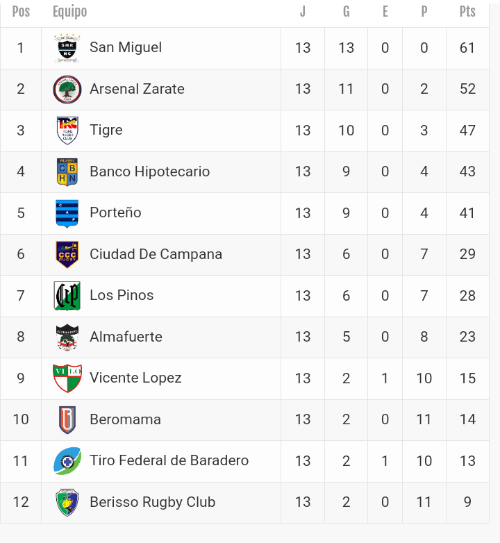 Se jugó la 13° fecha del Top 12 y el resto de las categorías de la URBA. Resultados, posiciones y próxima fecha.