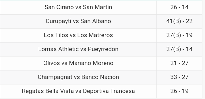 Se jugó la 13° fecha del Top 12 y el resto de las categorías de la URBA. Resultados, posiciones y próxima fecha.