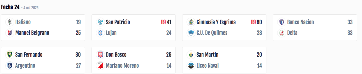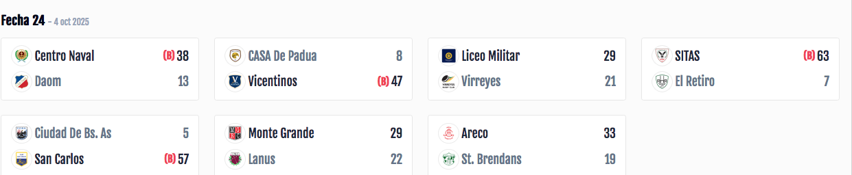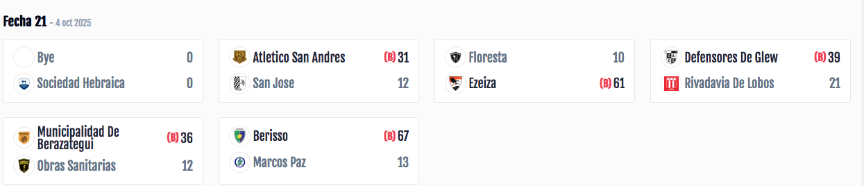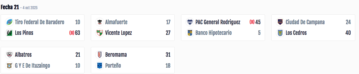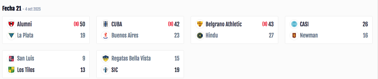 Se jugó la 21º fecha del Top 12 y el resto de las categorías de la URBA. Resultados, posiciones, y próxima fecha.
